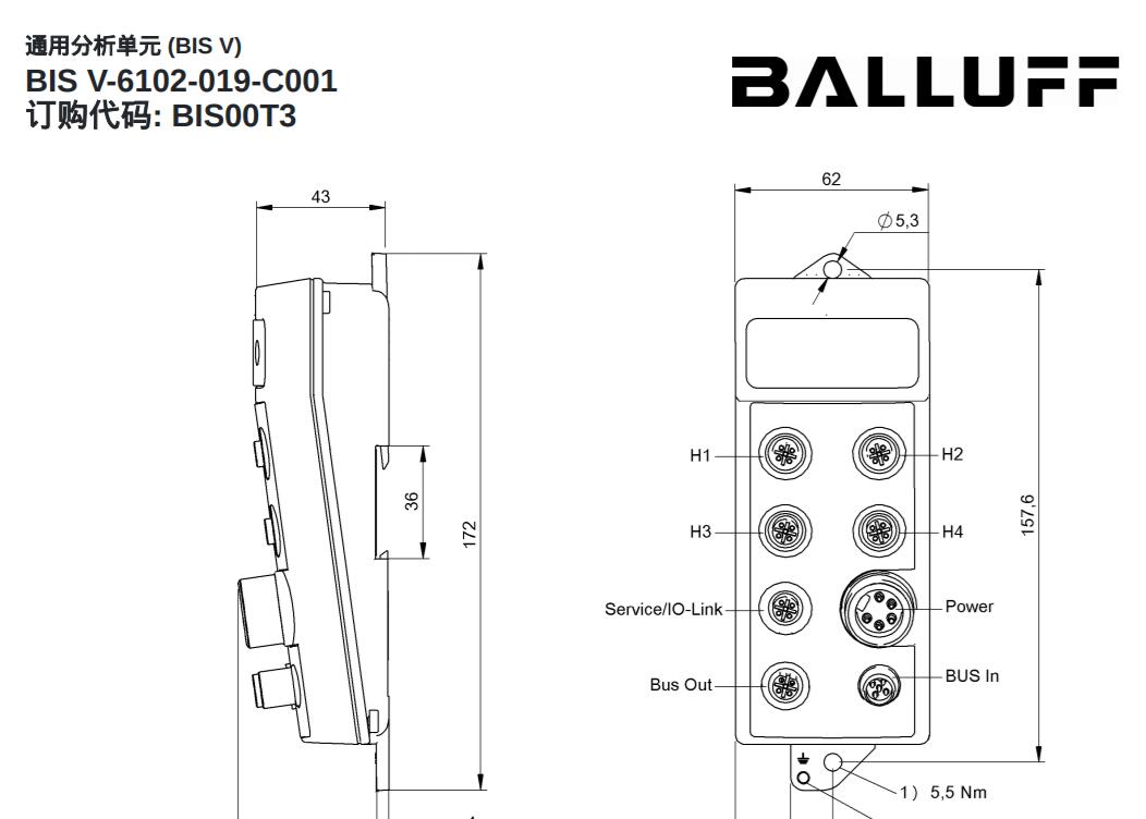 BIS00T3 BIS V-6102-019-C001 BALLUFF巴鲁夫 高频处理单元 (13.56 MHz)
