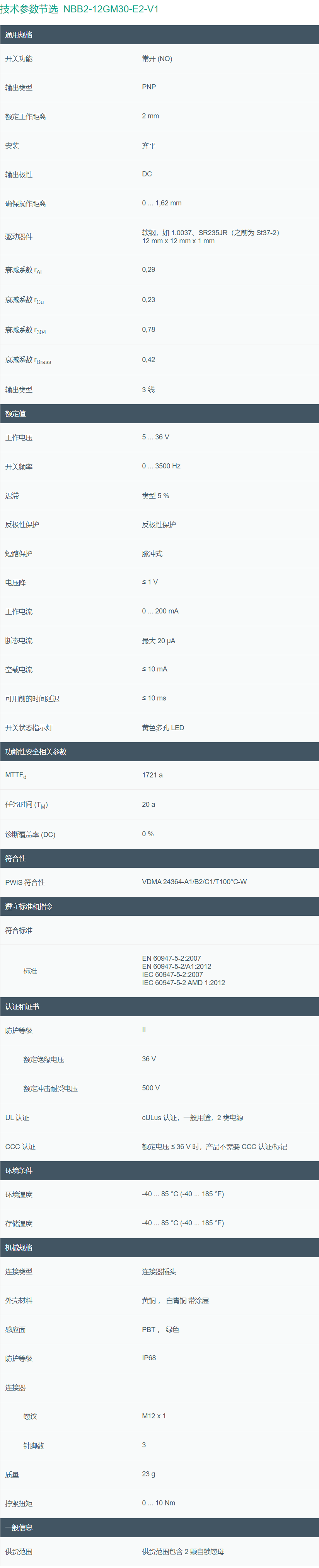 型号:NBB2-12GM30-E2-V1