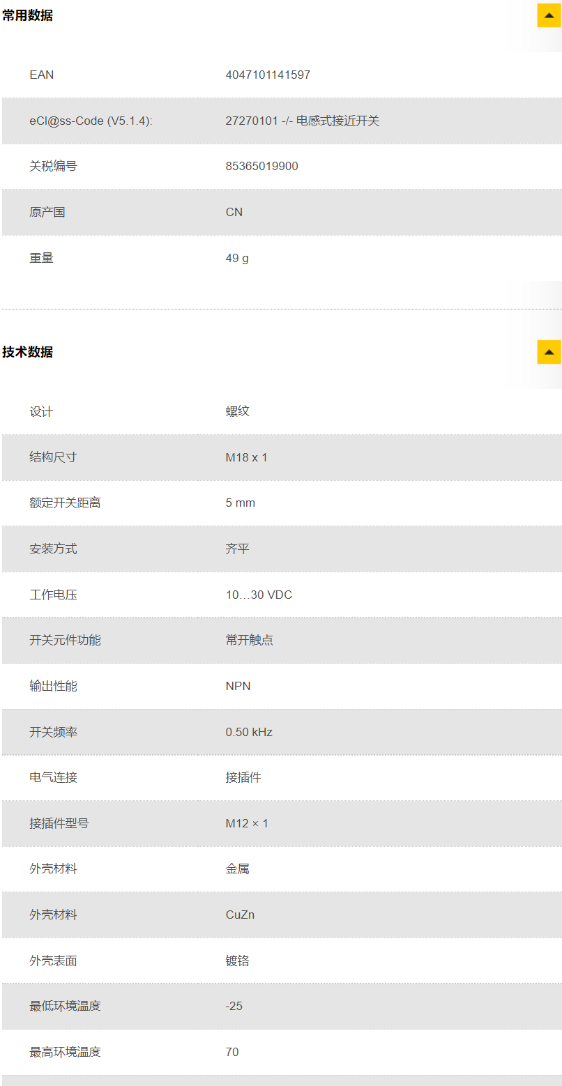 | eCl@ss-Code (V5.1.4): | 27270101 -/- 电感式接近开关 |